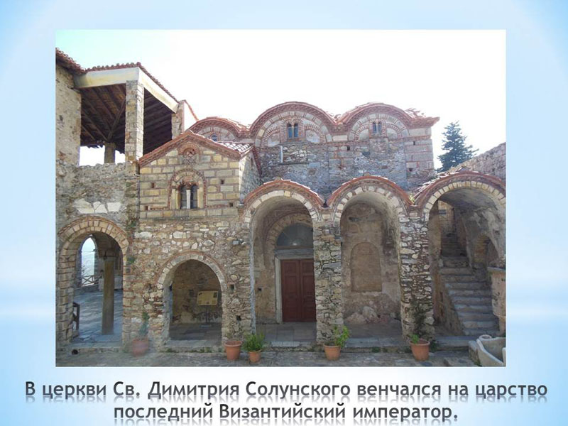 Есть в истории человечества страницы, которые подобны «загадке, завёрнутой в секрет и упакованной в тайну». К таким «загадкам» мы относим легендарную Древнюю Спарту, раскинувшуюся у подножия таинственного Тайгета в плодородной долине реки Эвротас. Когда-то главный противник изысканных Афин, Спарта сумела унести с собой в вечность свои секреты, оставив нам совсем немного: акрополь с древним театром и установленный неподалеку современный памятник царю Леониду, древнее святилище Артемиды Орфии, археологический музей и жуткое ущелье Кеадас на самом Тайгете. Но слава к Спарте вернётся вторично в средние века и уже под именем Мистрас. Вы посетите уникальный город-крепость, который будучи столицей Морейского деспотата и интеллектуальной столицей поздней Византии, сохранил франкскую цитадель, множество византийских храмов и монастырей, особняки местной знати и, наконец, сказочные виды на Лаконскую долину. Город-сателлит Константинополя Мистрас стал местом коронации последнего императора Византийской империи Константина ΧΙ Палеолога. Не пропустите возможности окунуться в уникальную средневековую атмосферу этого города